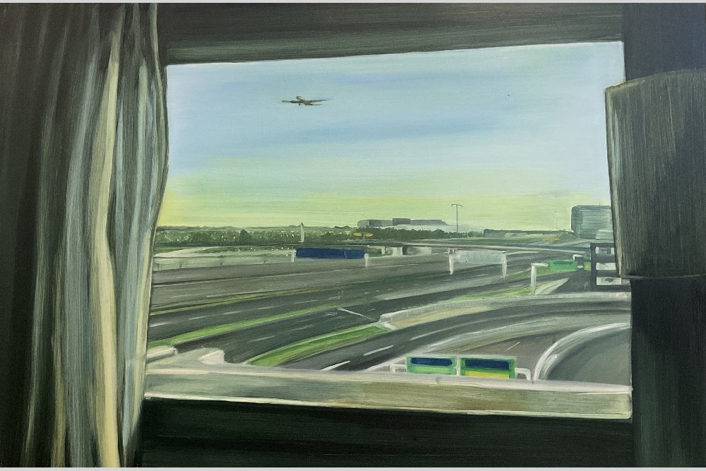 Sonderpreis des Lions-Clubs 2026 für sein Werk „Flughafen Frankfurt (Kreuz)“, Öl auf MDF